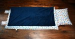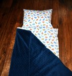 The nap mat measures 54"L by 20"W, and is made with 100% cotton fabric that is pre-washed to minimize shrinkage on both sides. All seams are serged (overlock safety stitch) for added durability. The pillow and blanket are attached and not removable. The blanket is minky dot in a coordinating solid color. There is a removable memory foam insert with Velcro opening along the entire length of the nap mat to ensure comfort while your child is sleeping. The Attached pillow case has a removable pillow with envelope back for easy insertion/removal. The nap mat rolls up and is secured with 2 Velcro flaps. There is also an attached strap for easy carrying for you or your little one. The memory foam insert and pillow insert are to be removed prior to washing the nap mat cover. This nap mat cover is machine washable on a gentle cycle in cold water. You may tumble dry on a low heat setting or lay it flat to dry. *DO NOT use dryer sheets. The memory foam insert is hand wash only and needs to air dry. The memory foam cannot be placed in the washer or dryer.