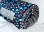 The nap mat measures 54"L by 20"W, and is made with 100% cotton fabric that is pre-washed to minimize shrinkage on both sides. All seams are serged (overlock safety stitch) for added durability. The pillow and blanket are attached and not removable. The blanket is minky dot in a coordinating solid color. There is a removable memory foam insert with Velcro opening along the entire length of the nap mat to ensure comfort while your child is sleeping. The Attached pillow case has a removable pillow with envelope back for easy insertion/removal. The nap mat rolls up and is secured with 2 Velcro flaps. There is also an attached strap for easy carrying for you or your little one. The memory foam insert and pillow insert are to be removed prior to washing the nap mat cover. This nap mat cover is machine washable on a gentle cycle in cold water. You may tumble dry on a low heat setting or lay it flat to dry. *DO NOT use dryer sheets. The memory foam insert is hand wash only and needs to air dry. The memory foam cannot be placed in the washer or dryer.