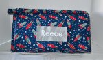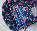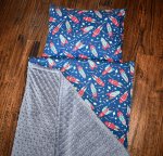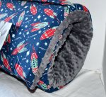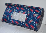 Blast Off Space Planet Solar System Rocket Navy 1.5" Memory Foam Kids Nap Mat with Grey Minky Dot Blanket