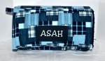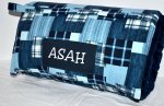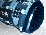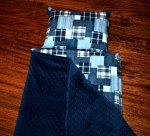 Blue Jean Madras Plaid 1.5" Memory Foam Kids Nap Mat with Navy Minky Dot Blanket