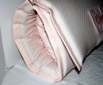 The nap mat measures 54"L by 20"W, and is made with 100% cotton fabric that is pre-washed to minimize shrinkage on both sides. All seams are serged (overlock safety stitch) for added durability. The pillow and blanket are attached and not removable. The blanket is minky dot in a coordinating solid color. There is a removable memory foam insert with Velcro opening along the entire length of the nap mat to ensure comfort while your child is sleeping. The Attached pillow case has a removable pillow with envelope back for easy insertion/removal. The nap mat rolls up and is secured with 2 Velcro flaps. There is also an attached strap for easy carrying for you or your little one. The memory foam insert and pillow insert are to be removed prior to washing the nap mat cover. This nap mat cover is machine washable on a gentle cycle in cold water. You may tumble dry on a low heat setting or lay it flat to dry. *DO NOT use dryer sheets. The memory foam insert is hand wash only and needs to air dry. The memory foam cannot be placed in the washer or dryer.