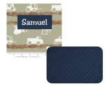 Boy Construction Zone Dig It Build It Trucks 1.5" Memory Foam Kids Nap Mat with Navy Minky Dot Blanket