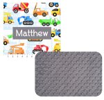 Construction Work Later Excavator Dig It Dump Trucks 2" Memory Foam Kids Nap Mat with Grey Minky Dot Blanket
