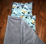 Diggers Dozers Construction Build It Blue Trucks 2" Memory Foam Kids Nap Mat with Grey Minky Dot Blanket