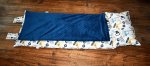 The nap mat measures 52 inches by 20 inches, and is made with 100% cotton fabric that is pre-washed to minimize shrinkage on both sides. All seams are serged (overlock safety stitch) for added durability. The pillow and blanket are attached and not removable. The blanket is minky dot in a coordinating solid color. I use two layers of 12oz. batting to ensure comfort while your child is sleeping. The mat rolls up and is secured with 2 hook and loop tape flaps. There is also an attached strap for easy carrying for you or your little one. This nap mat is machine washable on a gentle cycle in cold water. You may tumble dry on a low heat setting or lay it flat to dry. *DO NOT use dryer sheets.