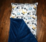 Diggers Dozers Construction Build It Trucks Tan Batting Kids Nap Mat with Navy Minky Dot Blanket