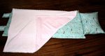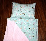 The nap mat measures 54"L by 20"W, and is made with 100% cotton fabric that is pre-washed to minimize shrinkage on both sides. All seams are serged (overlock safety stitch) for added durability. The pillow and blanket are attached and not removable. The blanket is minky dot in a coordinating solid color. There is a removable memory foam insert with Velcro opening along the entire length of the nap mat to ensure comfort while your child is sleeping. The Attached pillow case has a removable pillow with envelope back for easy insertion/removal. The nap mat rolls up and is secured with 2 Velcro flaps. There is also an attached strap for easy carrying for you or your little one. The memory foam insert and pillow insert are to be removed prior to washing the nap mat cover. This nap mat cover is machine washable on a gentle cycle in cold water. You may tumble dry on a low heat setting or lay it flat to dry. *DO NOT use dryer sheets. The memory foam insert is hand wash only and needs to air dry. The memory foam cannot be placed in the washer or dryer.