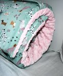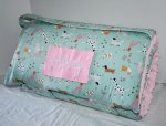 Doggy Animal Puppy Dog Pet Flower Floral Garden Mint 2" Memory Foam Kids Nap Mat with Light Pink Minky Dot Blanket