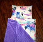 The nap mat measures 54"L by 20"W, and is made with 100% cotton fabric that is pre-washed to minimize shrinkage on both sides. All seams are serged (overlock safety stitch) for added durability. The pillow and blanket are attached and not removable. The blanket is minky dot in a coordinating solid color. There is a removable memory foam insert with Velcro opening along the entire length of the nap mat to ensure comfort while your child is sleeping. The Attached pillow case has a removable pillow with envelope back for easy insertion/removal. The nap mat rolls up and is secured with 2 Velcro flaps. There is also an attached strap for easy carrying for you or your little one. The memory foam insert and pillow insert are to be removed prior to washing the nap mat cover. This nap mat cover is machine washable on a gentle cycle in cold water. You may tumble dry on a low heat setting or lay it flat to dry. *DO NOT use dryer sheets. The memory foam insert is hand wash only and needs to air dry. The memory foam cannot be placed in the washer or dryer.