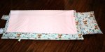 The nap mat measures 54"L by 20"W, and is made with 100% cotton fabric that is pre-washed to minimize shrinkage on both sides. All seams are serged (overlock safety stitch) for added durability. The pillow and blanket are attached and not removable. The blanket is minky dot in a coordinating solid color. There is a removable memory foam insert with Velcro opening along the entire length of the nap mat to ensure comfort while your child is sleeping. The Attached pillow case has a removable pillow with envelope back for easy insertion/removal. The nap mat rolls up and is secured with 2 Velcro flaps. There is also an attached strap for easy carrying for you or your little one. The memory foam insert and pillow insert are to be removed prior to washing the nap mat cover. This nap mat cover is machine washable on a gentle cycle in cold water. You may tumble dry on a low heat setting or lay it flat to dry. *DO NOT use dryer sheets. The memory foam insert is hand wash only and needs to air dry. The memory foam cannot be placed in the washer or dryer.