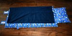 The nap mat measures 54"L by 20"W, and is made with 100% cotton fabric that is pre-washed to minimize shrinkage on both sides. All seams are serged (overlock safety stitch) for added durability. The pillow and blanket are attached and not removable. The blanket is minky dot in a coordinating solid color. There is a removable memory foam insert with Velcro opening along the entire length of the nap mat to ensure comfort while your child is sleeping. The Attached pillow case has a removable pillow with envelope back for easy insertion/removal. The nap mat rolls up and is secured with 2 Velcro flaps. There is also an attached strap for easy carrying for you or your little one. The memory foam insert and pillow insert are to be removed prior to washing the nap mat cover. This nap mat cover is machine washable on a gentle cycle in cold water. You may tumble dry on a low heat setting or lay it flat to dry. *DO NOT use dryer sheets. The memory foam insert is hand wash only and needs to air dry. The memory foam cannot be placed in the washer or dryer.