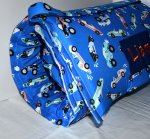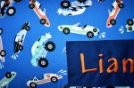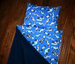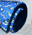 Full Speed Ahead Monster Truck Cars 2" Memory Foam Kids Nap Mat with Navy Minky Dot Blanket
