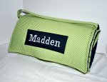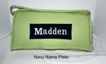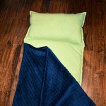 Kelly Green Gingham Check Plaid Batting Kids Nap Mat with Navy Minky Dot Blanket