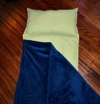 The nap mat measures 52 inches by 20 inches, and is made with 100% cotton fabric that is pre-washed to minimize shrinkage on both sides. All seams are serged (overlock safety stitch) for added durability. The pillow and blanket are attached and not removable. The blanket is minky dot in a coordinating solid color. I use two layers of 12oz. batting to ensure comfort while your child is sleeping. The mat rolls up and is secured with 2 hook and loop tape flaps. There is also an attached strap for easy carrying for you or your little one. This nap mat is machine washable on a gentle cycle in cold water. You may tumble dry on a low heat setting or lay it flat to dry. *DO NOT use dryer sheets.