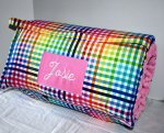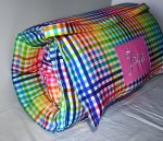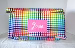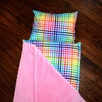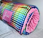 Rainbow Picnic Gingham Check Plaid 1.5" Memory Foam Kids Nap Mat with Pink Minky Dot Blanket