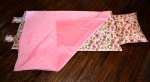 The nap mat measures 54"L by 20"W, and is made with 100% cotton fabric that is pre-washed to minimize shrinkage on both sides. All seams are serged (overlock safety stitch) for added durability. The pillow and blanket are attached and not removable. The blanket is minky dot in a coordinating solid color. There is a removable memory foam insert with Velcro opening along the entire length of the nap mat to ensure comfort while your child is sleeping. The Attached pillow case has a removable pillow with envelope back for easy insertion/removal. The nap mat rolls up and is secured with 2 Velcro flaps. There is also an attached strap for easy carrying for you or your little one. The memory foam insert and pillow insert are to be removed prior to washing the nap mat cover. This nap mat cover is machine washable on a gentle cycle in cold water. You may tumble dry on a low heat setting or lay it flat to dry. *DO NOT use dryer sheets. The memory foam insert is hand wash only and needs to air dry. The memory foam cannot be placed in the washer or dryer.