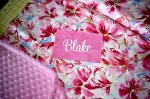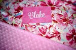 Summer Peony Watercolor Floral Flower Garden 1.5" Memory Foam Kids Nap Mat with Pink Minky Dot Blanket